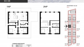 2 NP: (54,5 m2) chodba, spálňa, izba, kúpeľňa, šatník