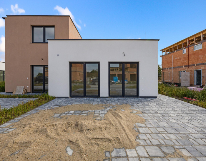 Dom: Štandard: obdĺžniková vaňa 170 x 70 cm + batérie + sifón s prepadom, sprchovací kút 90 x 90 cm + batérie + žľab, závesné WC v kúpeľni + zabudovaný splachovací systém, umývadlo 80 cm + batéria v kúpeľni, dlažba – vstupná chodba, WC, kúpeľňa, obklady v kúpeľni, interiérové dvere – biele, v ostatných miestnostiach parkety, vonkajšie obvodové murivo tehla Wienerberger – hrúbka 30 cm, vnútorná priečka Pezinská tehla – hrúbka 11,5 cm, zateplenie obvodového muriva – hrúbka 15 cm polystyrénových dosiek, fasádna omietka – hrúbka 1,5 cm, interiérové sadrové omietky, 20 + 20 cm stropná izolácia minerálnou vlnou, plastové okná a balkónové dvere 6 komorové – 3 sklo, bezpečnostné vchodové dvere so sklenenou výplňou, teplovodné kúrenie, 2x 5 cm podlahová izolácia, tepelné čerpadlo, zásuvky + vypínače, elektrická poistná skrinka, optické a dátové káble, elektrická predpríprava na alarm, elektrická predpríprava na studňu a závlahu, zabudované rozvody na klimatizáciu v obývačke, predpríprava na vonkajšie elektrické žalúzie.
