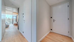LAYOUT: Entrance hall with relaxation area, bathroom with shower and toilet, kitchen connected to the living room with access to the loggia. STANDARD: The apartment is furnished to a high standard: aluminum windows, fire safety doors, heating and cooling via its own heat pump for each building, MITSUBISHI heat recovery, external blinds, LOXONE technology (automatic heating and cooling, lighting, shading, music) with intelligent control also via a mobile application.