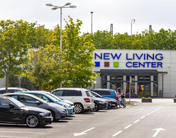 BUDOVA: New Living Center je moderný komplex na ploche 5.500 m2. Ponúka širokú škálu obchodov s nábytkom, doplnkami do domácnosti a rôznymi službami pre zlepšenie bývania. Budova je zrekonštruovaná, prostredníctvom svetlíkov je zabezpečený dostatok prirodzeného svetla, v budove sa nachádza kaviareň s reštauráciou, otvorené a priestranné vnútorné priestory, ktoré poskytujú pohodlie a príjemnú atmosféru, záhrada, ktorá poskytuje priestor pre rôzne eventy. Okrem širokej ponuky obchodov si nájomcovia, ale aj centrum, organizujú rôzne podujatia a workshopy pre zákazníkov, ktoré im pomáhajú pri výbere a návrhu interiéru.