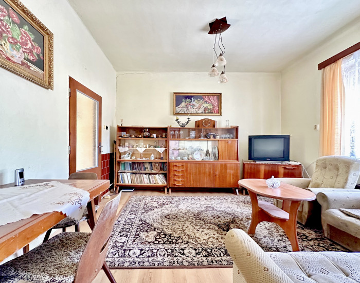 DOM: Rodinný dom leží na pozemku s celkovou rozlohou 630m2, na ktorej sa okrem domu nachádza aj murovaná garáž spojená s priestrannou letnou kuchyňou. Obytná plocha domu predstavuje 80m2 a ako exteriér tak aj v interiér je prevažne v pôvodnom stave. Rodinný dom je preto veľmi dobrou voľbou na zrekonštruovanie podľa svojich predstáv. Vedlajšia stavba má rozlohu 40m2 a je napojená na vodu a elektriku. V roku 2022 bola na vedlajšej stavbe menená plechová strecha. Nehnuteľnosť je orientovaná na 2 svetové strany a to S v prednej časti a J v zadnej časti.