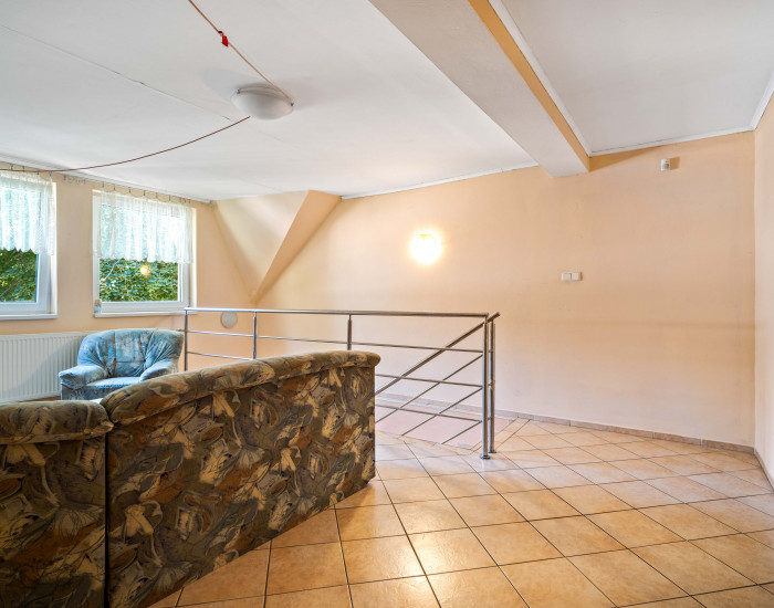DISPOZÍCIA: Na prízemí sa nachádza vstupná chodba, jedálenská časť so spoločnou kuchynskou linkou, 3 izby, technická miestnosť a sklad. Z prízemia je výstup aj na terasu, ktorá sa nachádza v zadnej časti objektu. Poschodie ponúka 5 izieb. Všetky izby majú vlastnú kúpeľňu so sprchou a WC.
