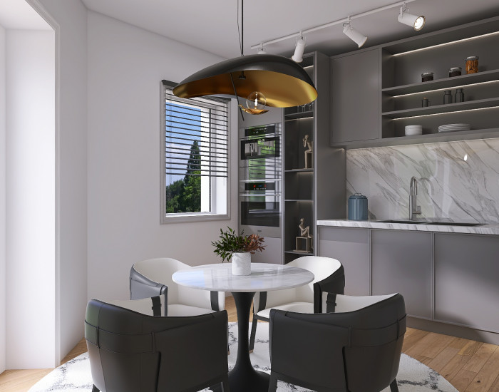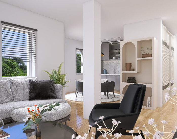 VYBAVENIE: Apartmán je dostupný v štádiu HOLOPRIESTOR, čo umožňuje budúcemu majiteľovi prispôsobiť si ho podľa vlastných predstáv. Každý apartmán je vybavený teplovodným podlahovým kúrením a predprípravou na inštaláciu solárnych panelov, čo zabezpečuje energetickú efektívnosť. Predpríprava pre kúpeľne a toalety je realizovaná systémom Geberit, čo zaručuje vysokú kvalitu a funkčnosť. Vykurovanie je zabezpečené moderným tepelným čerpadlom a okno je z izolačného trojskla, čo prispieva k vynikajúcej tepelnej a zvukovej izolácii. Pre tých, ktorí preferujú dokončenie bytu, je k dispozícii možnosť realizácie do štandardu za cenu 150 EUR/m² bez DPH.