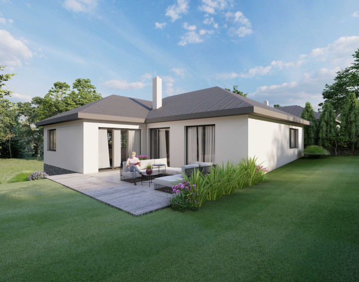 DOM: dvojpodlažný rodinný dom s krásnym výhľadom. Prvé podlažie (72m2) tvorí garáž pre dve autá s elektrickou posuvnou bránou (53m2), práčovňa (technická miestnosť) a vstupná chodba. Druhé podlažie (125m2) tvorí chodba, kuchyňa prepojená s obývačkou, špajza, kúpeľňa, samostané WC a tri samostatné izby, hlavná spálňa má aj šatník. Vstup na terasu je zabezpečený z obývačky. Nehnuteľnosť je možné kúpiť v štádiu "holodom" ako aj v štádiu "štandard": podlahy, dlažby, interiérové dvere a zárubne, sanita, vymaľované steny, osadené vypínače a zásuvky. Farebné prevedenie štandardu je na výbere klienta. Dom bude napojený na elektrinu a vodu. Vykurovanie je zabezpečené tepelným čerpadlom. Nehnuteľnosť je v štádiu prípravy výstavby a budú postavené dva identické domy vedľa seba. Termín ukončenia výstavby vrátane kolaudácie nehnuteľností je stanovený na koniec roka 2025.