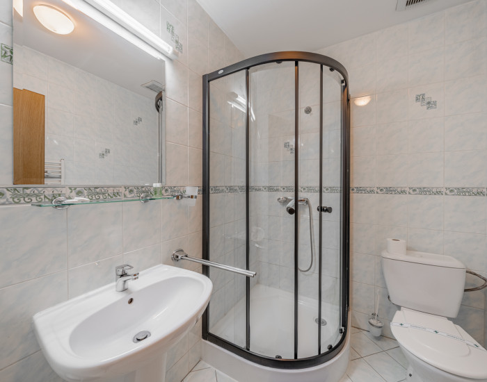 BUDOVA: Penzión má podlahovú plochu 686 m2 na dvoch podlažiach. Na prízemí sa nachádza reštaurácia s vonkajšou terasou (85 m2), profesionálna kuchyňa so zázemím, chladiaca miestnosť, prístavba šatne a skladu z roku 2024, 2x toaleta pre hostí, toaleta so sprchou pre personál, 2x samostatná kancelária a kotolňa. Na poschodí je umiestnených 8 izieb a 2 apartmány s vlastným hygienickým zariadením a klimatizačnými jednotkami. Celý objekt je napojený na zabezpečovacie zariadenie a kamerový systém.