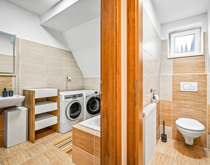 VYBAVENIE: Byt je vybavený bezpečnostnými vchodovými dverami, plastovými oknami a balkónovými dverami s izolačným trojsklom. Obytné miestnosti majú kvalitné laminátové podlahy, balkóny sú pokryté keramickou mrazuvzdornou dlažbou. Kúpeľne a chodby sú vybavené keramickou dlažbou. V apartmáne sa nachádza krb na tuhé palivo, ale aj termostat na riadenie teploty priamo z pohodlia apartmánu alebo diaľkovo pomocou aplikácie.
