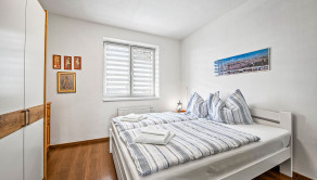 APARTMÁN: Celková výmera apartmánu je 82,93 m2 vstup do apartmánu sa nachádza na 2 podlaží apartmánového domu bez výťahu. Apartmán disponuje  terasou orientovanoui na severozápad, tiež pivnicou na prízemí. V apartmáne sa nachádza priestranná chodba, kuchyňa elegantne prepojená s obývacou izbou kde sa nachádza aj krb, 2x samostatná spálňa, kúpeľňa a WC. K apartmánu prislúcha aj podiel na spoločných častiach domu, kde patrí aj priestranná záhrada, altánok s možnosťou grilovania a posedení,  ktorý je kompletne oplotení a využívaný len vlastníkmi nehnuteľností.