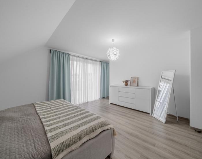 2. NP: chodba, z ktorej je vstup do kúpeľne s vaňou, sprchovým kútom, WC a bidetom, ďalej do šatníka, izby č. 2, izby č. 3, samostatného WC a spálne so samostatným šatníkom. Z izieb č. 2, 3 a zo spálne je výstup na balkón.