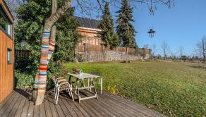 Na pozemku stojí plne využitelný mobilný domček, ktorý je vhodný aj na komerčné využitie.