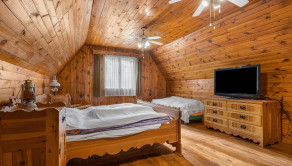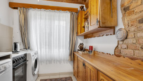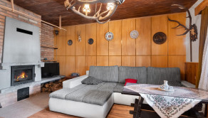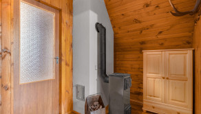 DISPOZÍCIA CHATY: vstup do chaty je riešený cez priestrannú krytú terasu. Vstupujete priamo do obývacej izby, v ktorej je krb a schody na poschodie. Z obývacej izby je vstup do chodby, z ktorej sa dostanete do jedálne, kúpeľne s WC a kuchyne. Na poschodí sú kachle a dve obytné miestnosti.