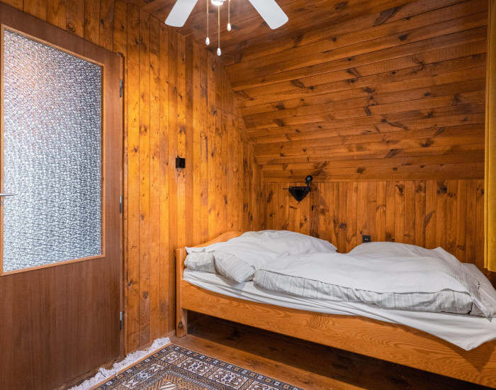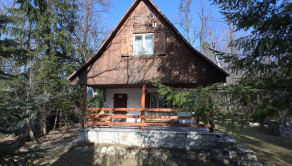 REKREAČNÁ CHATA: stavba z roku 1970, celková zastavaná plocha je 75 m2 a úžitková plocha je 80,20 m2. Murovaná chata má dve nadzemné podlažia, 3 obytné izby, terasu, jedáleň, WC so sprchou a kuchyňu. Kúrenie je na tuhé palivo - krb, kachle, prípadne elektrické radiátory. Ohrev vody je zabezpečený cez elektrický bojler. Chata sa predáva kompletne zariadená. Na pozemku sa nachádza záhradný domček, ohnisko a gril.