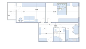 BYT: prešiel dávnejšie rekonštrukciou-vymenené jedno plastové okno, murované jadro, nová elektrina, stupačky, interiérové dvere a zárubne, čiastočne podlahy. Byt má veľkorysú výmeru a to 63m2 + 3,44m2 lodžia. K bytu patrí pivnica na prízemí bytového domu. Byt je možné po rekonštrukcii prerobiť na 3 izbový. Kuchyňa je orientovaná na sever, spálňa a obývačka na juh.