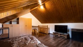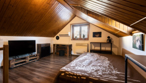 RODINNÝ DOM: Úžitková plocha tejto nehnuteľnosti je 140m2. Vchod do domu je od dvora cez priestrannú terasu s posedením. Z predsiene sa dostanete do šatníka/technickej miestnosti, z ktorého je aj výstup na povalu. Ďalej sa dostanete do kúpeľne, a veľkej otvorenej miestnosti, kde je kuchyňa špajzou a veľká obývacia miestnosť. Dom má dve samostatné spálne, z ktorých je jedna na poschodí.