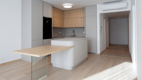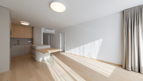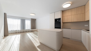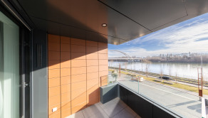 DISPOZÍCIA A ZARIADENIE: Disponuje priestrannou vstupnou halou so šatníkom a dizajnovým zrkadlom, samostatným WC, kúpeľňou s vaňou a praktickou technickou miestnosťou. Denná časť je tvorená otvorenou obývacou izbou prepojenou s elegantnou kuchyňou s ostrovčekom, jedálenským stolom a vstavanými spotrebičmi vrátane konvektomatu a zabudovaného kávovaru. Zo svetlej obývačky je priamy vstup na loggiu orientovanú na Dunaj. Nočnú zónu dopĺňa samostatná spálňa. Byt je čiastočne zariadený, čo umožňuje klientovi zariadiť si byt podľa vlastných predstáv.