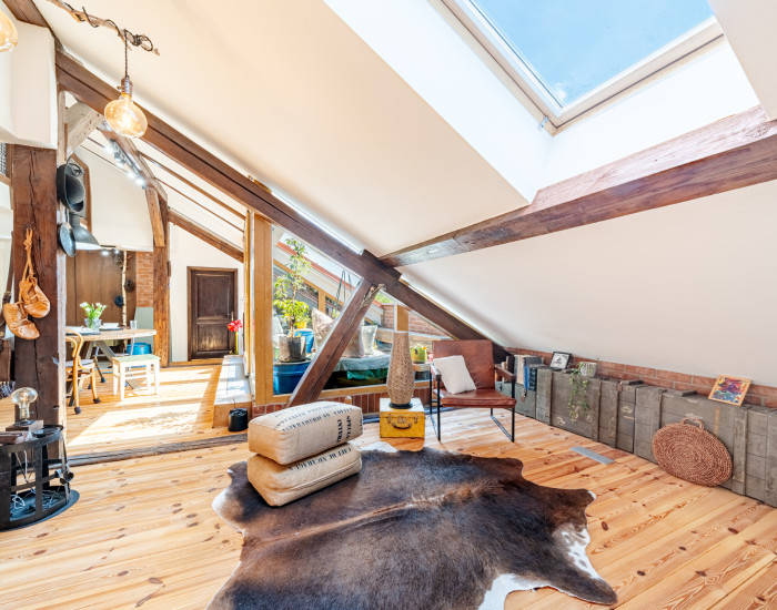 Bosen Group offers for sale a 4-room duplex apartment with a unique spirit. The apartment stands out thanks to a complete renovation, personally supervised by the owners, resulting in an original living space where wood is the predominant material. The apartment features a terrace with an exceptional view of Bratislava Castle. The property is located in the Old Town on Kozia Street.
