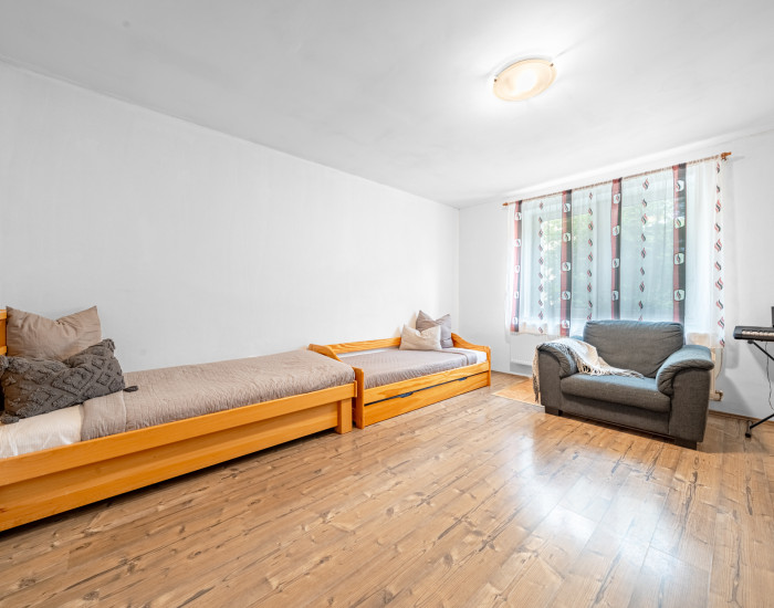 BYT: byt prešiel kompletnou rekonštrukciou,( plastové okná, znižovanie stropu, omietky, elektrina,kuchynská linka, kúpeľna,) celková výmera bytu,bez plochy pivnice, a skladu je 73,63 m2. K bytu prináleží pivnica o výmere 8,61 m2 a sklad o výmere 24 m2. Byt sa nachádza na prízemí. Byt má podlahové vykurovanie a krbové kachle. Bytový dom je z roku 1947 a prešiel rekonštrukciou, ( zateplenie, výmena kotla, výmena hlavnej prípojky, nová kanalizácia, strešná krytina)