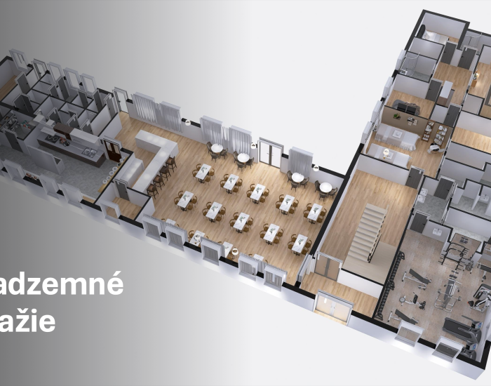 BUDOVA: Jedná sa o budovu so zastavanou plochou 618 m2 a ponúkame ju v štádiu výstavby tak ako je vidieť na fotografiách inzerátu. Budova je riešená ako dvojpodlažný objekt a má tvar písmena L čo vytvára uzavreté súkromie vzadu za objektom. Budova je jedinečná svojou lokalitou pod hradnou skalou. Jednoduchá, logicky tvorená hmota objektu je zastrešená sedlovou strechou s tmavo-šedou strešnou krytinou.Nehnuteľnosť má dostatok presklených plôch z reštaurácie a obytných miestností, čo zaručuje dostatok svetla aj v zimných mesiacoch. Okná vo farbe orech smerom na ulicu vytvárajú harmonicky a esteticky vyvážený celok s historickým tvárnením. Vo vnútri pozemku vytvára objekt príjemné átrium s budúcim prírodným jazierkom.