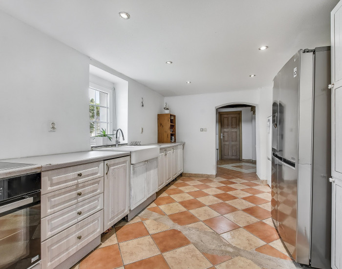 DOM: s úžitkovou plochou 165 m2. Zastavaná plocha domu je 140 m2. Dom prešiel čiastočnou rekonštrukciou: v roku 2011 bola menená strecha, plastové okná, zateplenie a nové rozvody vody a elektriny boli dokončené v tomto roku. Kúrenie je elektrické s možnosťou vybudovania krbu.