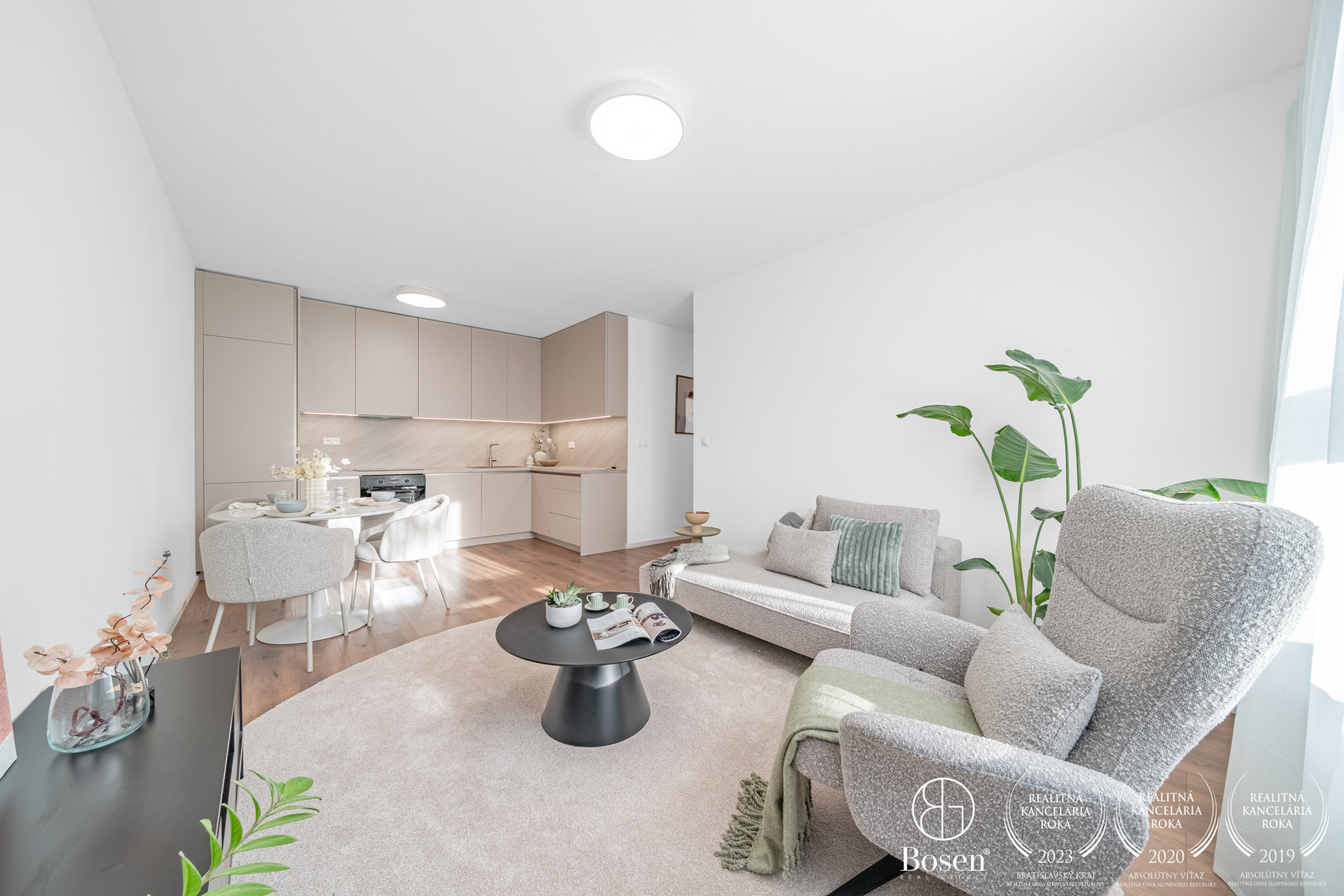 REZERVOVANÉ: Bosen Group Vám exkluzívne ponúka na predaj čiastočne zariadený 2 izbový byt v projekte TAMMI od developera YIT, ulica Pri Hrubej Lúke, Bratislava – mestská časť Dúbravka.