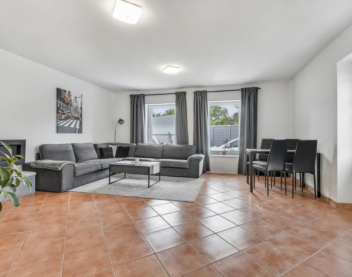 DISPOZÍCIA: na prízemí sa nachádza vstupná chodba, detská izba, kuchyňa , ktorá je spojená s jedálňou a obývačkou, kúpeľňa s WC . Vstup na dvor je z obývačky.