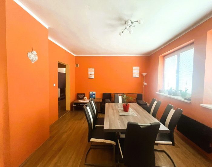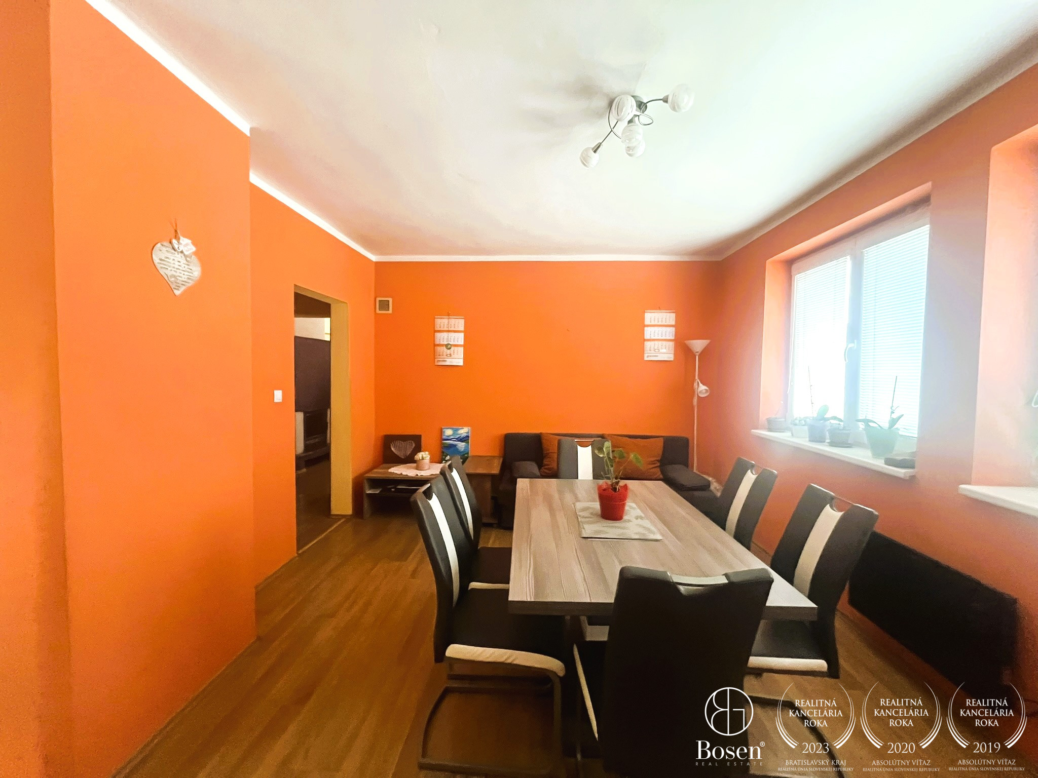 BYT: 4 izbový byt s výmerou 110 m2 sa nachádza na druhom nadzemnom poschodí bytového domu so štyrmi bytovými jednotkami. Podlahy v obytných miestnostiach sú laminátové, v kuchyni a vstupnej chodbe je keramická dlažba, v kúpeľni so sociálnym zariadením je keramická dlažba s podlahovým kúrením. Byt je vykurovaný samostatne, kombináciou elektrických konvertorov a krbovej vložky . Bytový dom bol postavený v roku 1970, a v roku 2015 bola zrealizovaná jeho obnova zateplením s novou povrchovou úpravou a osadením plastových okien s vnútornými žaluziami. V bytovom dome sú kompletné inžinierske siete. Na prízemí domu je technická časť s garážou o výmere 20,4 m2 a pivnicou, patriacou k bytu. K bytu patrí aj záhrada s celkovou výmerou 734 m2 v ktorej je malá hospodárska budova, voliéra a ovocné stromy.. Mesačné náklady sú 100 € plus energie.