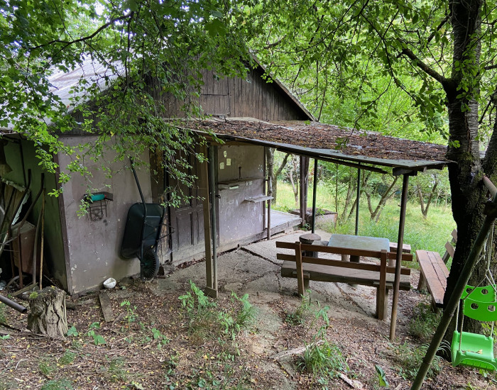POZEMOK: Je o výmere 823 m2, obklopený lesom, mierne svahovitého charakteru, v tvare štvorca s úzkou príjazdovou cestou. K pozemku sa dostanete z bratislavskej Dúbravky najskôr asfaltovou, neskôr lesnou cestou. V lokalite sa nachádzajú ďaľšie záhrady a rekreačné domy. Na pozemku je situovaná jedna menšia chatka so zavedenou elektrinou.