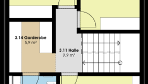 2NP – (67 m2) – schodisko, chodba, tri izby a kúpeľňa s toaletou