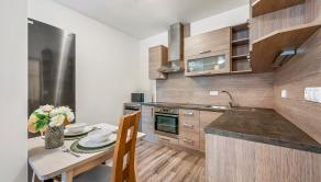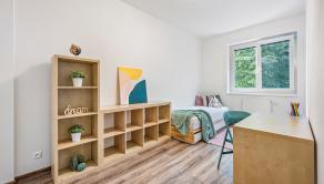BYT: je navrhnutý s dôrazom na komfort a funkčnosť. Dispozíciu tvorí vstupná chodba s úložným priestorom, svetlá obývacia izba prepojená s kuchyňou a jedálenskou časťou s výstupom na loggiu (3,5 m²), priestranná spálňa, útulná detská izba a kúpeľňa s vaňou a WC.
