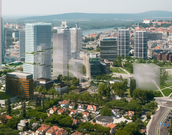 LOKALITA: Tento moderný rezidenčný projekt sa nachádza v srdci Bratislavy, medzi ulicami Košická, Plátenícka, Prístavná a Mlynské Nivy. Ide o dynamicky sa rozvíjajúcu časť mesta, ktorá spája pulz mestského života s pokojnejšou atmosférou okolitých ulíc. Downtown Yards ponúka dokonalý mix bývania, kancelárií, obchodov a verejných priestorov. Vďaka princípu „15-minútového mesta“ máte všetko potrebné – obchody, reštaurácie, školy, zdravotnú starostlivosť aj parky – na dosah pešo alebo na bicykli. V bezprostrednej blízkosti nájdete kultúrne a zábavné zariadenia, ako Slovenské národné divadlo či Euroveu, a zároveň oddychové zelené plochy pre relax. Architektúra projektu je elegantná a nadčasová, inšpirovaná moderným londýnskym štýlom, čím Downtown Yards vytvára nový orientačný bod bratislavského downtownu.