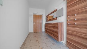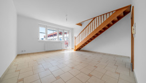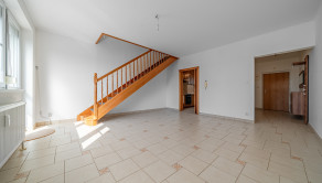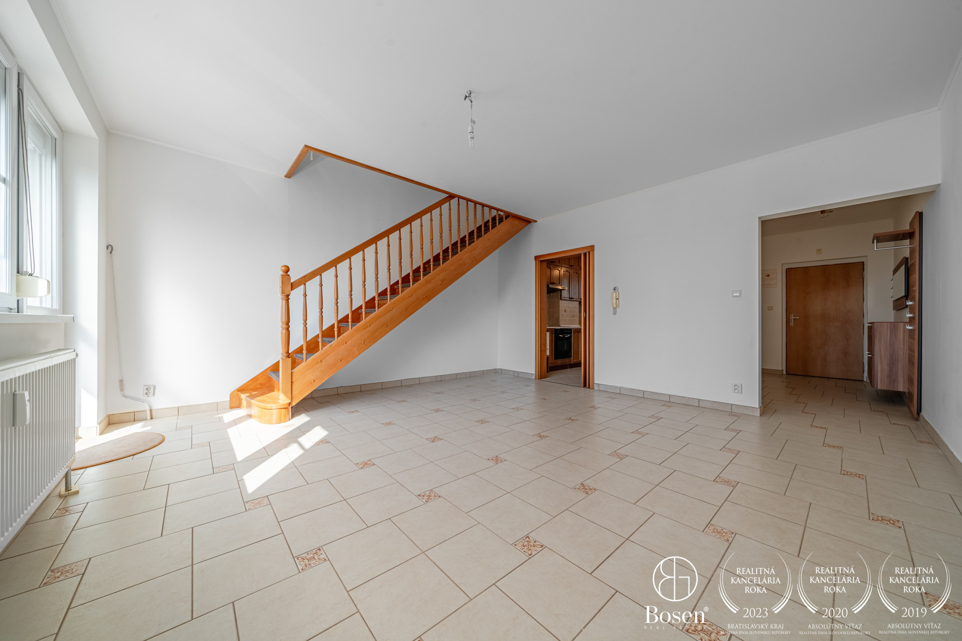 DISPOZÍCIA: Vstupná predsieň je priestranná a nachádza sa tu samostatná toaleta s umývadlom. Z predsiene sa vstupuje do obývacej izby, ktorá je prepojená s veľkou kuchyňou a má výstup na balkón. Schodisko vedie na vrchné podlažie, kde sa nachádzajú dve samostatné izby, veľká loggia a kúpeľňa s vaňou, toaletou a dvojumývadlom. Na všetkých oknách sú vonkajšie žalúzie.