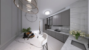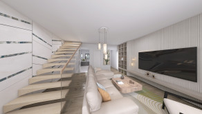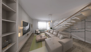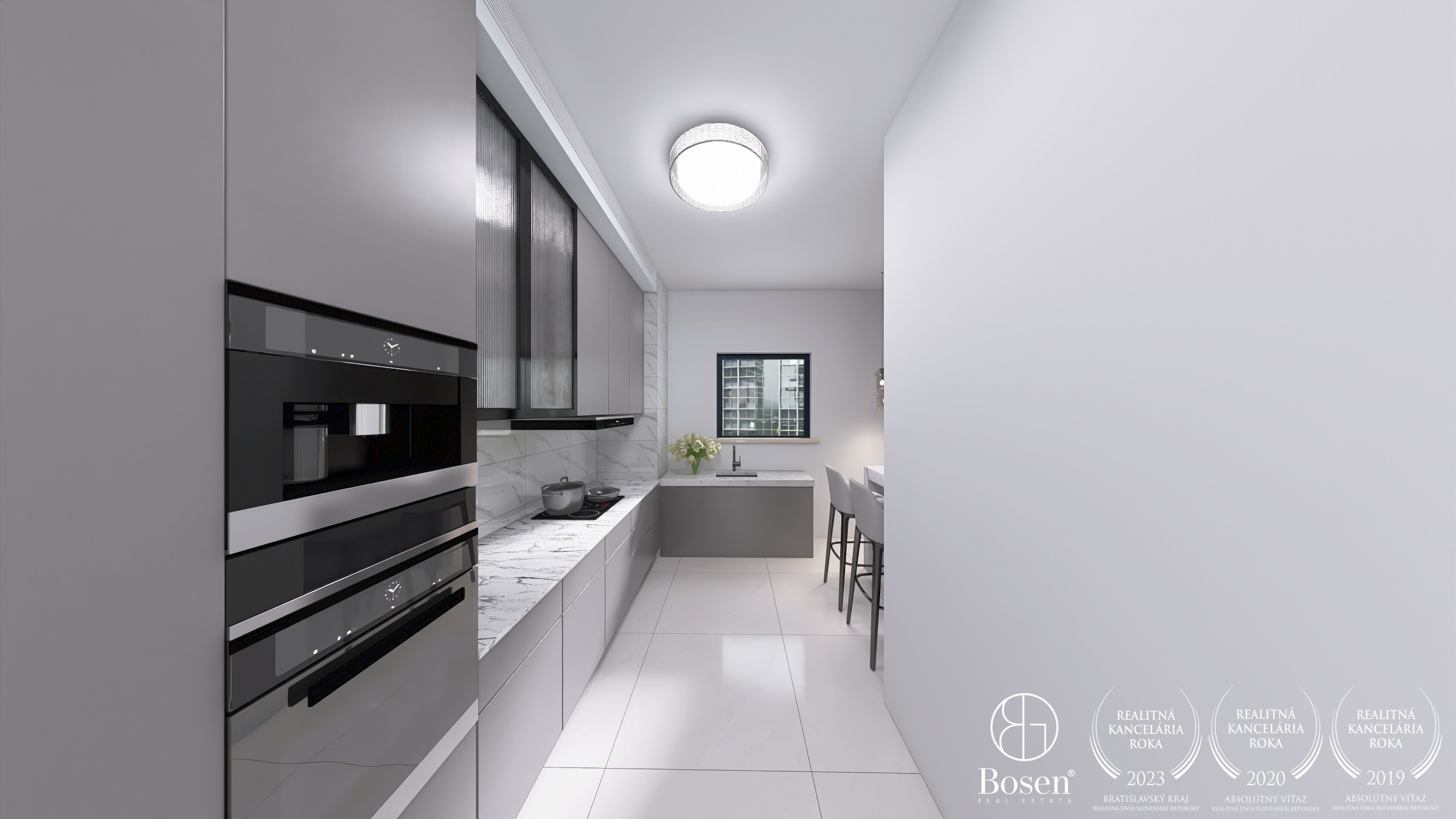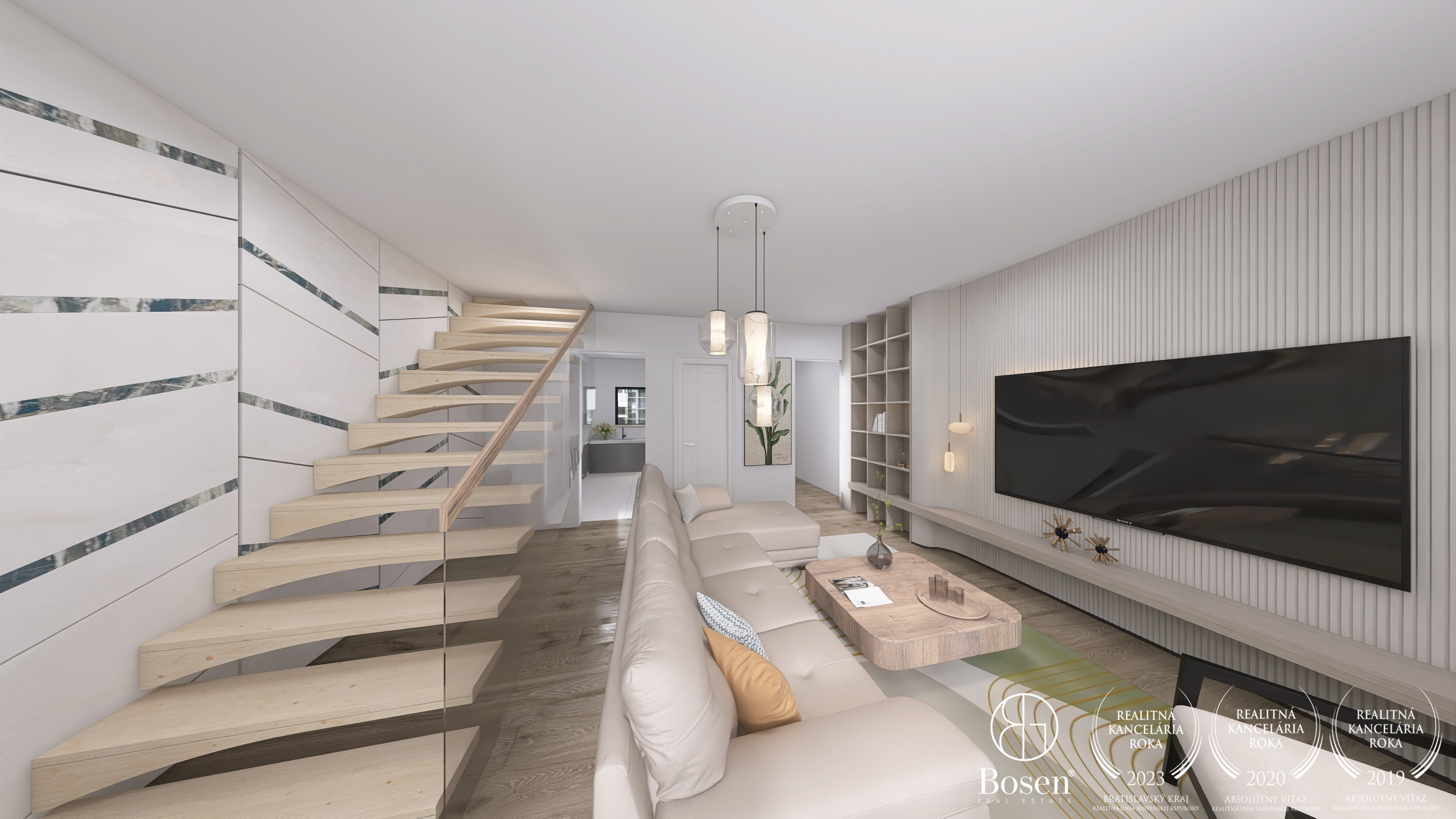 ZARIADENIE: Byt sa predáva tak, ako je zachytený na fotografiách – nezariadený, s kuchynskou linkou a vstavanými spotrebičmi. Pre lepšiu predstavu sme pripravili vizualizácie, ako si môžete tento priestranný mezanín zariadiť podľa vlastných predstáv.