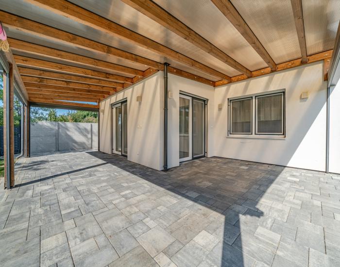 RODINNÝ DOM: Úžitková plocha tohto luxusného rodinného domu je 152 m2, má veľkú terasu veľkosti 45 m2 a 5 izieb. Pri výstavbe boli použité kvalitné materiály, konštrukcia je tehlová. Súčasťou domu sú plastové okná s izolačným trojsklom, elektrické vonkajšie žalúzie v celom dome a elektrické zatienenie terasy. Súčasťou smart vybavenia je ovládanie cez aplikáciu, a to: alarm, klimatizácia, osvetlenie, závlaha, kúrenie.