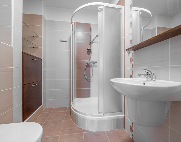 DISPOZÍCIA: chodba, takmer oddelená kuchyňa, kúpeľňa - vaňa s toaletou, kúpelňa - sprchový kút s toaletou, loggia