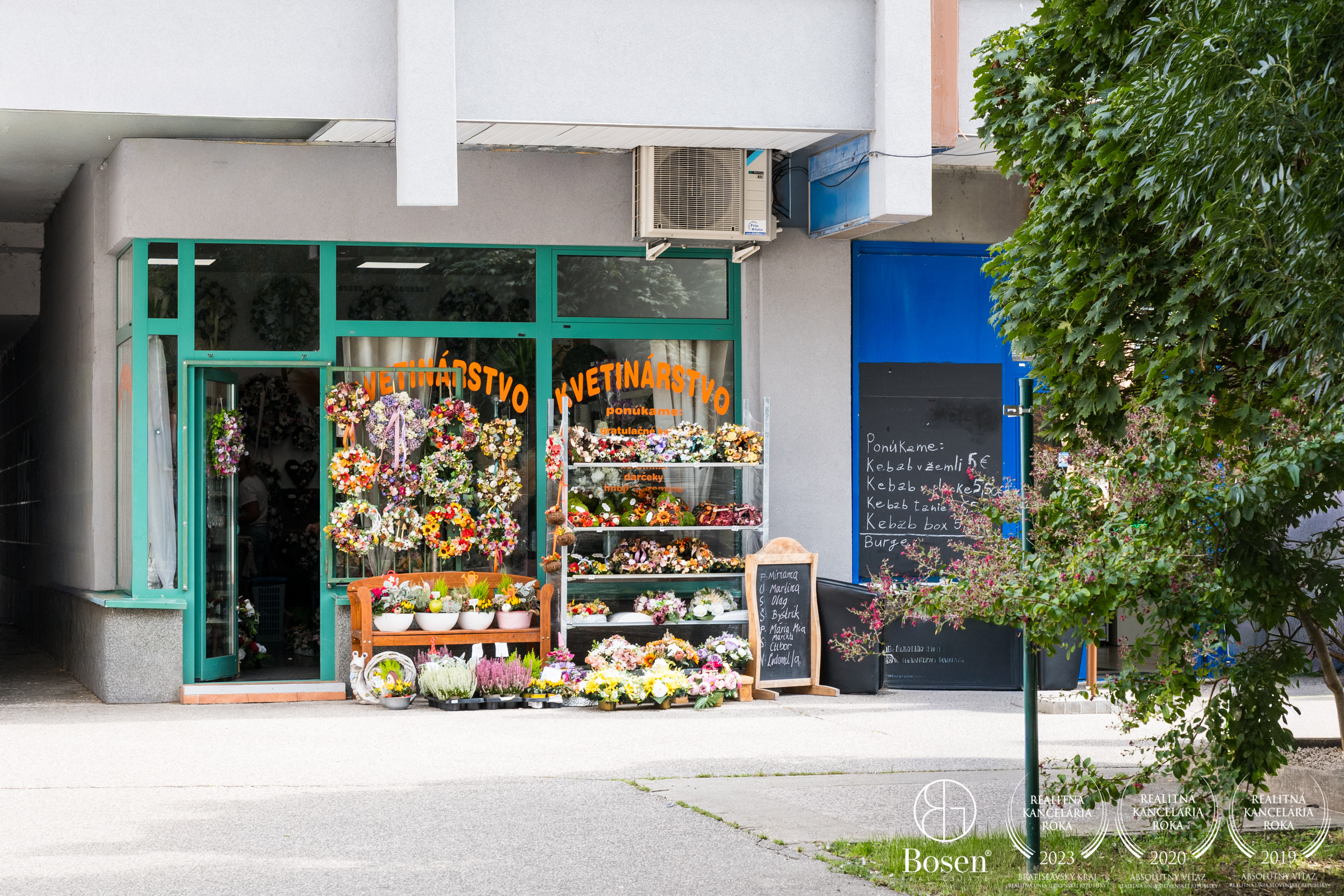 DISPOZÍCIA: Priestor je vkusne zariadený a prispôsobený potrebám kvetinárstva. Pozostáva z hlavného otvoreného priestoru, skladu, a toalety. Prioritne sa predáva sa komplet zariadené ako kvetinárstvo.