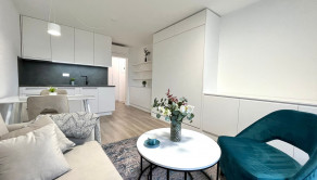 ZARIADNIE: Byt sa prenajímal čiastočne zariadený. V obývačke sa nachádza sedačka, kreslo, konferenčný stolík, sklápacia posteľ, jedálenský stôl so stoličkami a dostatok úložného miesta. Kuchyňa - kuchynská linka (umývačka riadu, indukčná varná doska - dvojplatnička, chladnička, práčka). V kúpeľni je WC a sprchový kút.