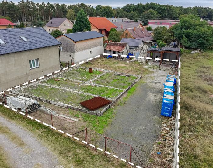 POZEMOK: Oplotený rovinatý pozemok v intraviláne, výmera 707 m², v tichej časti obce. Pozemok je pripravený na stavbu rodinného domu; bolo vydané stavebné povolenie, ktorému skončila platnosť, ale dá sa znova získať. Založené šalovanie na základ domu, ktoré môžete použiť, alebo zmeniť podľa vašich predstáv. Po dohode s majiteľkou je možnosť získať množstvo stavebného materiálu, ktorý je v súčasnosti na pozemku.