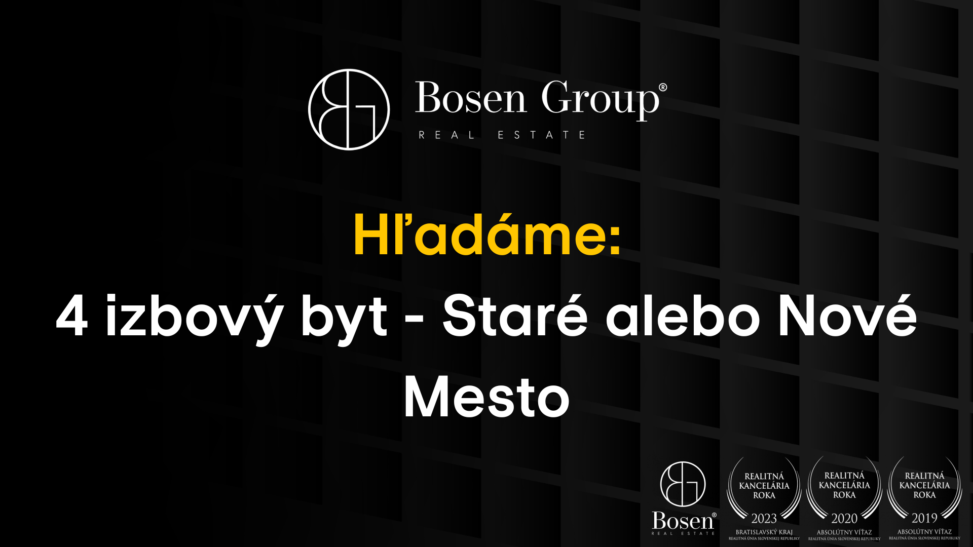 Bosen Group pre konkrétneho klienta hľadáme 4 izbový byt s balkónom a parkovacím státim