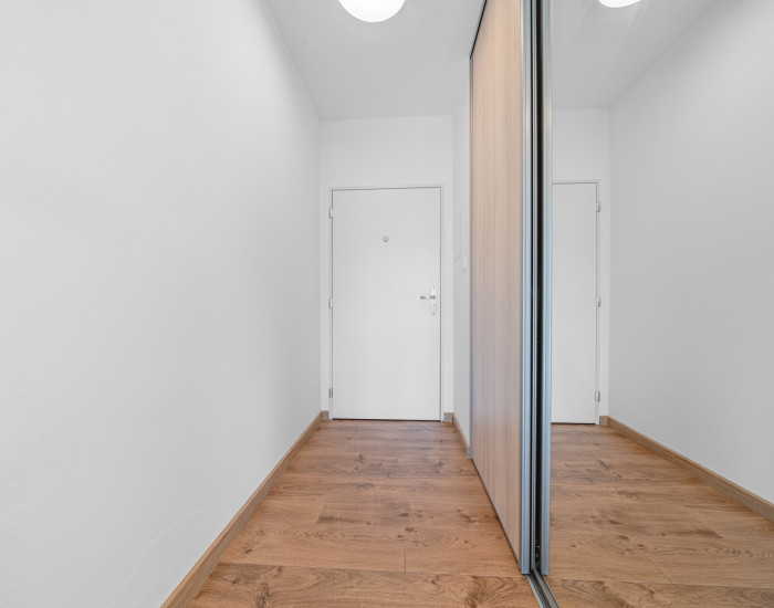 The layout is truly fantastic – no wasted spaces or long corridors. The storage space is exceptionally well used, which is rare for a 2-room apartment.