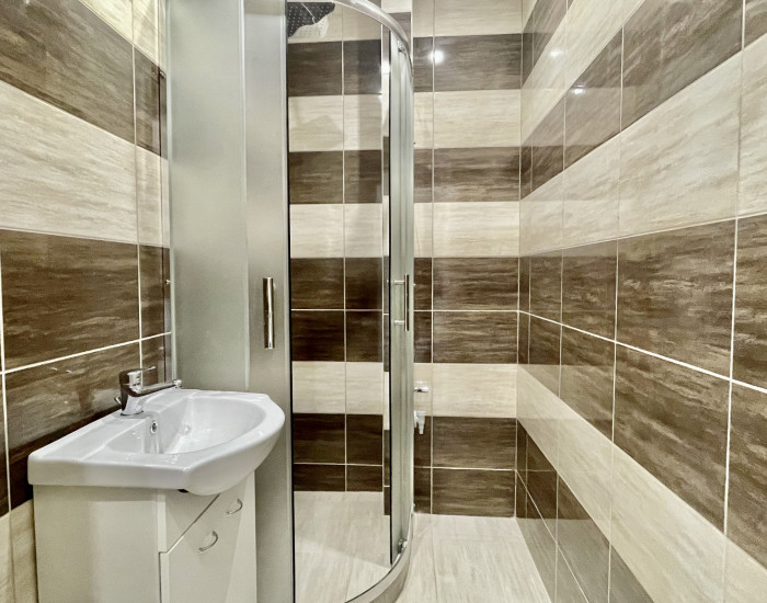 Kúpeľňa disponuje sprchovým kútom, práčkou.