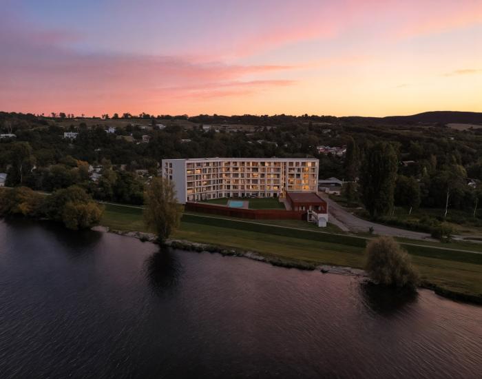 LOCATION: The BLUEWAVE project offers premium living in beautiful nature with proximity to the spa town of Piešťany. The building includes a dental clinic, and a restaurant is within walking distance. Complete civic amenities are available just 5 minutes by car in the center of Piešťany.