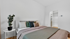 V spálni sa nachádza manželská posteľ s úložným priestorom a šatníkový systém.
