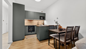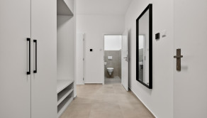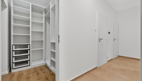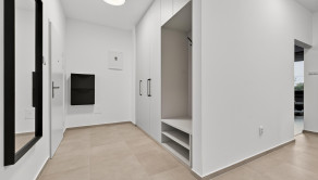 Byt pozostáva z priestrannej vstupnej chodby so vstavanou šatníkovou skriňou, z ktorej sa vstupuje do samostatnej toalety a kúpeľne s vaňou. Zo vstupnej časti sa ďalej prechádza do spálne s vlastným šatníkom. Ďalšiu časť bytu tvorí moderná kuchyňa prepojená s obývacou izbou, z ktorej je výstup na loggiu.