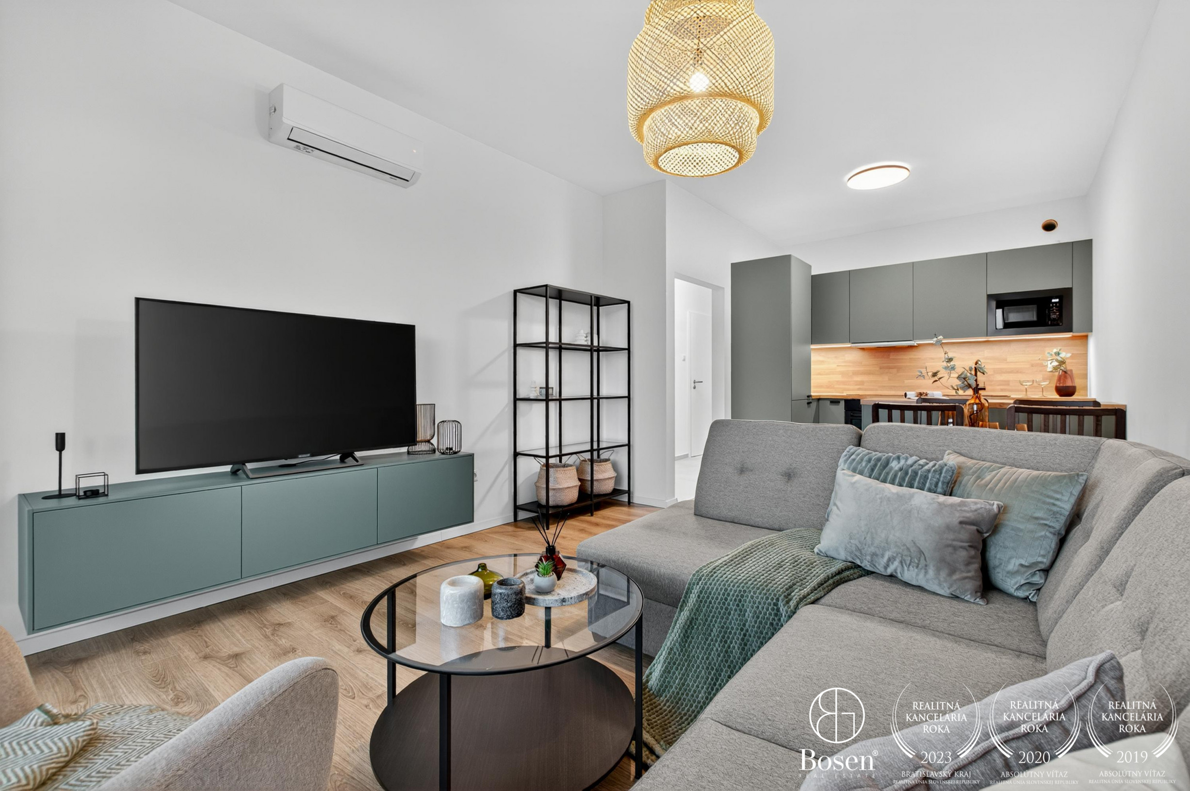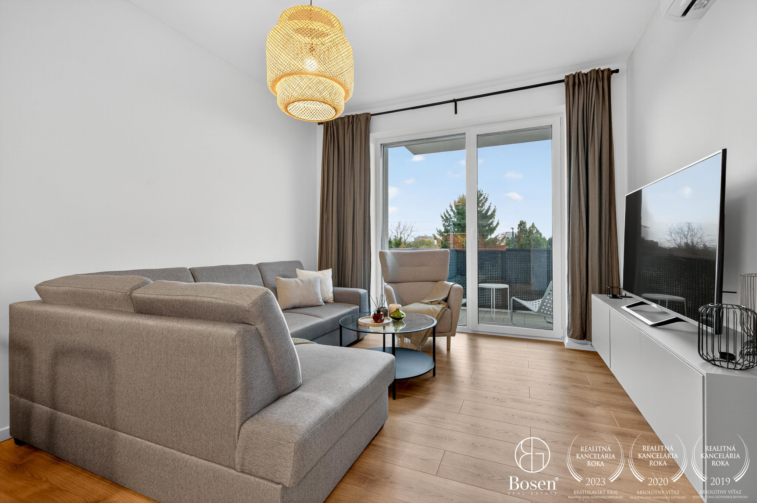 Bosen Group ponúka na prenájom čisto nový, štýlovo zariadený 2-izbový byt na Geologickej ulici v Podunajských Biskupiciach.
