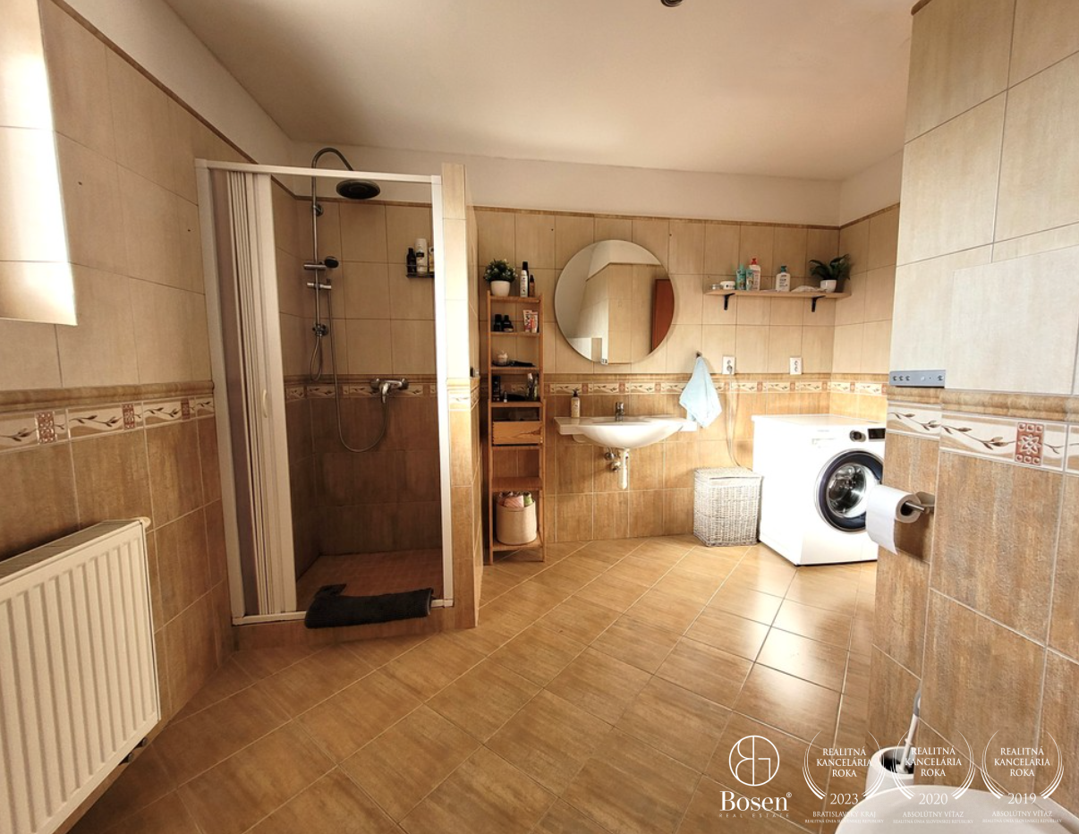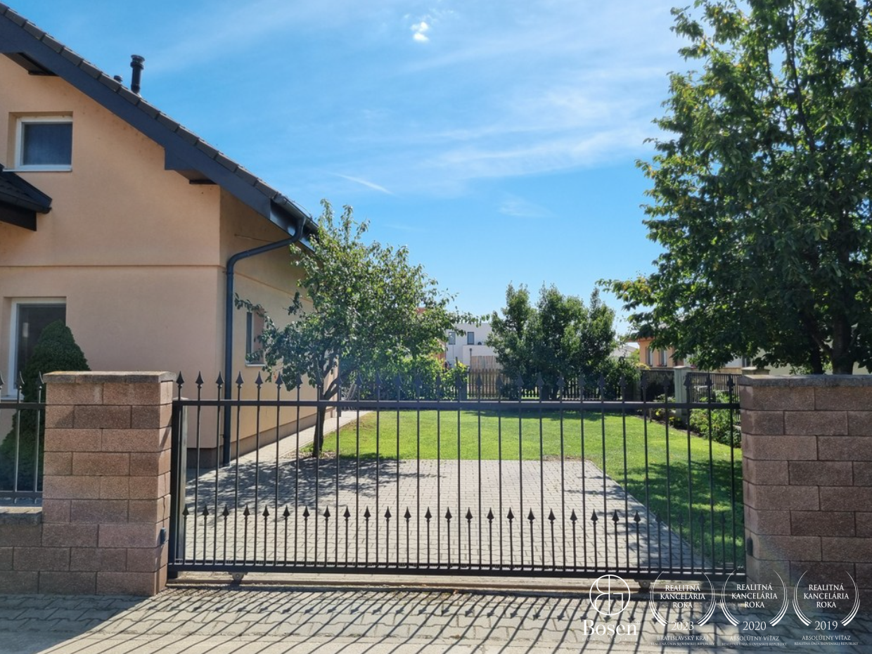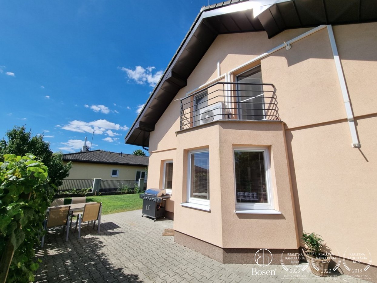 TECHNICKÉ PARAMETRE: Typ stavby: murovaný, POROTHERM 380 mm + zateplenie. Strecha je sedlová, zhotovená zo škridle, je zateplená a oplechovaná kvalitným falcovaným pozinkovaným plechom Testa di Moro so zábranou proti hmyzu a vtáctvu (realizácia prebehla v roku 2024). Okná v dome sú plastové s dvojsklom, terasové dvere s trojsklom. Podlahy sú laminátové aj dlažba. Dom je vykurovaný plynovým kotlom PROTHERM Panter, kúrenie radiátormi. Disponuje všetkými inžinierskymi sieťami - elektrina, plyn, voda, verejná kanalizácia, optický internet Telekom, studňa s novým čerpadlom a dvoma výstupmi na pripojenie hadice na oboch stranách pozemku. Dom je plne klimatizovaný a je takisto zabezpečený alarmom na detekciu pohybu. Pozemok je riadne oplotený, pričom disponuje dvomi elektrickými bránami s diaľkovým ovládaním. Plochy okolo celého domu sú spevnené zámkovou dlažbou. Garáž je vykurovaná s elektrickými dvermi.