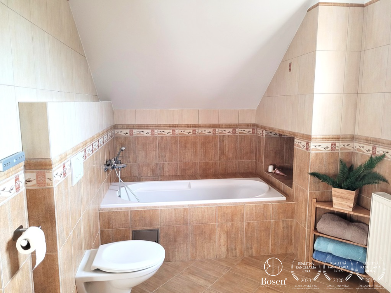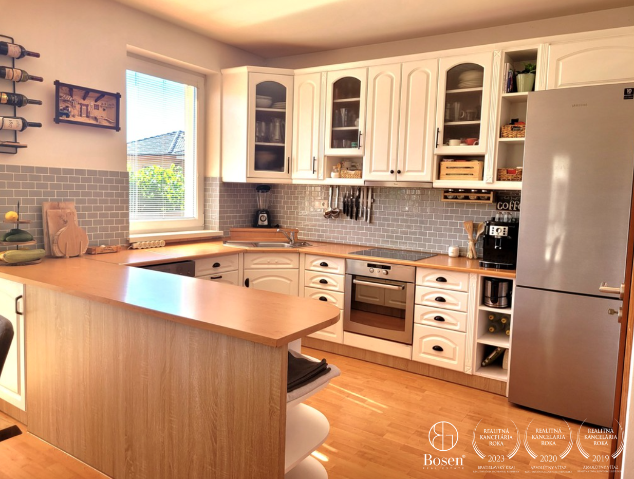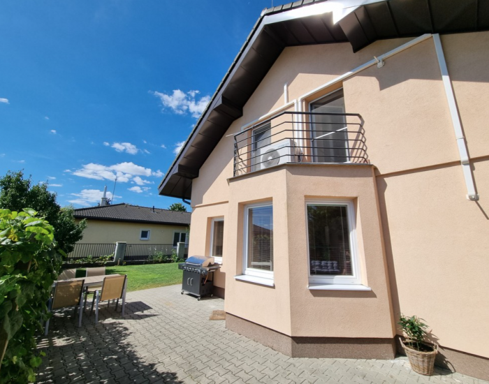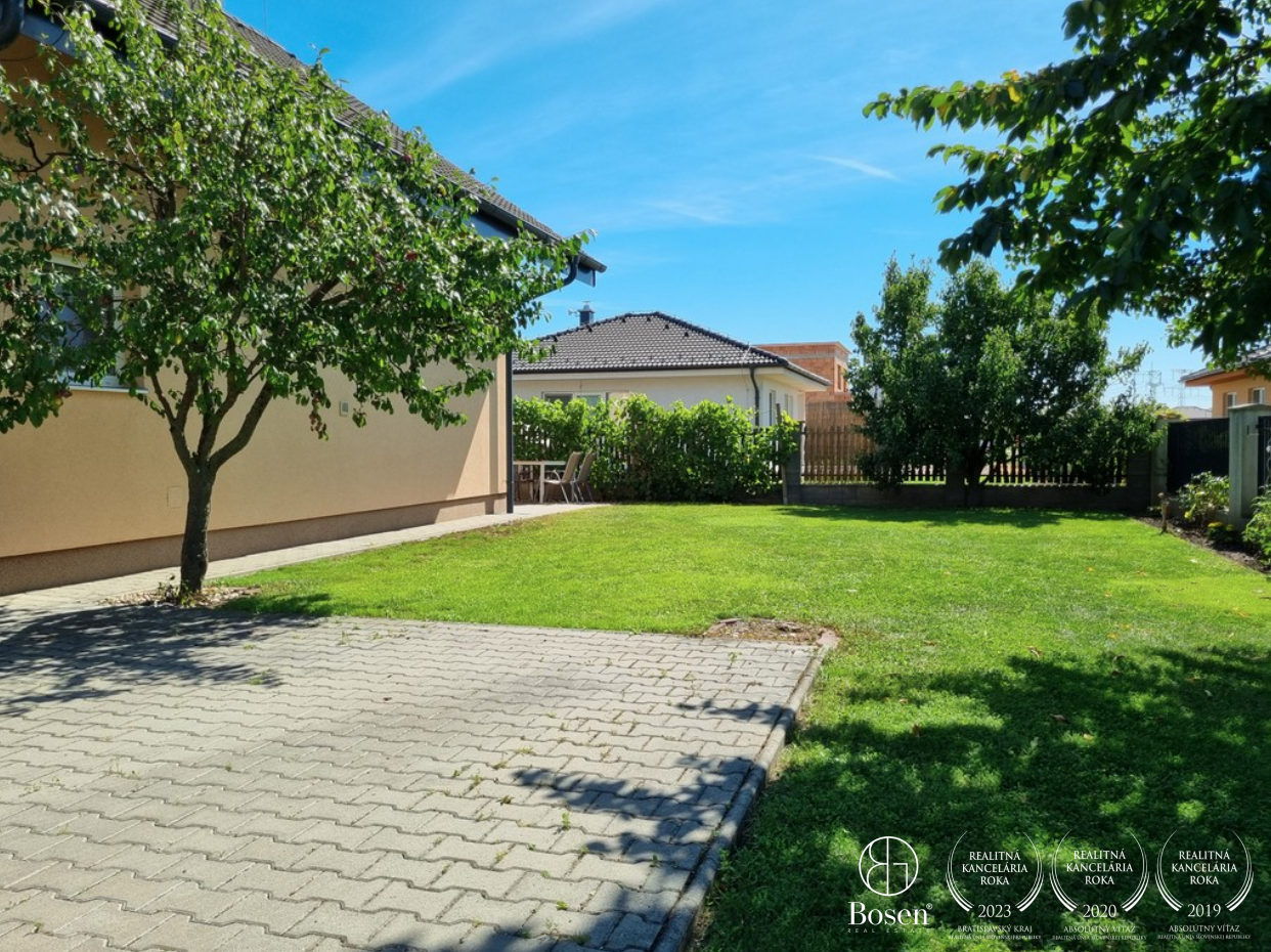 TECHNICKÉ PARAMETRE: Typ stavby: murovaný, POROTHERM 380 mm + zateplenie. Strecha je sedlová, zhotovená zo škridle, je zateplená a oplechovaná kvalitným falcovaným pozinkovaným plechom Testa di Moro so zábranou proti hmyzu a vtáctvu (realizácia prebehla v roku 2024). Okná v dome sú plastové s dvojsklom, terasové dvere s trojsklom. Podlahy sú laminátové aj dlažba. Dom je vykurovaný plynovým kotlom PROTHERM Panter, kúrenie radiátormi. Disponuje všetkými inžinierskymi sieťami - elektrina, plyn, voda, verejná kanalizácia, optický internet Telekom, studňa s novým čerpadlom a dvoma výstupmi na pripojenie hadice na oboch stranách pozemku. Dom je plne klimatizovaný a je takisto zabezpečený alarmom na detekciu pohybu. Pozemok je riadne oplotený, pričom disponuje dvomi elektrickými bránami s diaľkovým ovládaním. Plochy okolo celého domu sú spevnené zámkovou dlažbou. Garáž je vykurovaná s elektrickými dvermi.