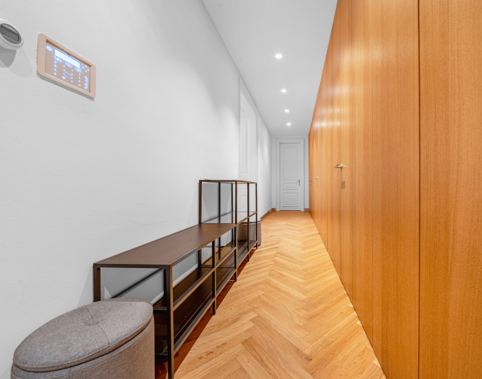 Zachované pôvodné drevené parkety, vysoké stropy a remeselné detaily dotvárajú autentický charakter interiéru, ktorý je doplnený o moderné prvky pre nadčasový a komfortný štandard bývania.