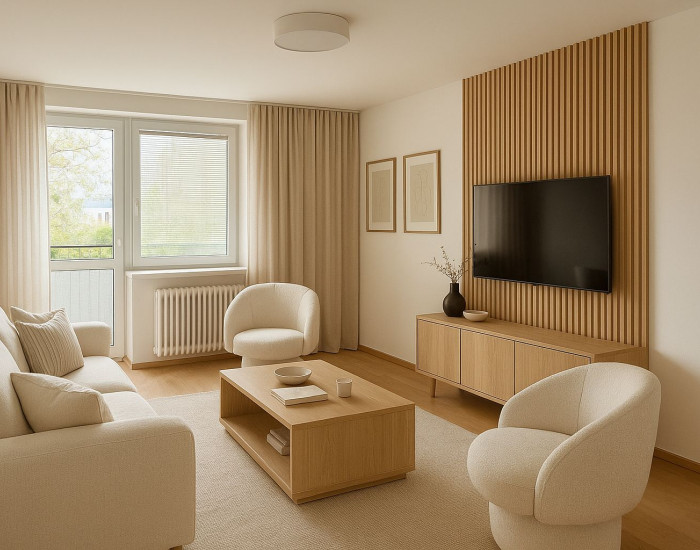 DISPOZÍCIA: Byt pozostáva zo štyroch samostatných izieb, kuchyne, kúpeľne a oddeleného WC. Dva balkóny prinášajú dostatok denného svetla a umožňujú vychutnať si pokojný výhľad do okolia. Byt má 88m2.
