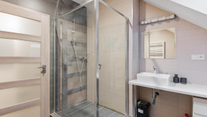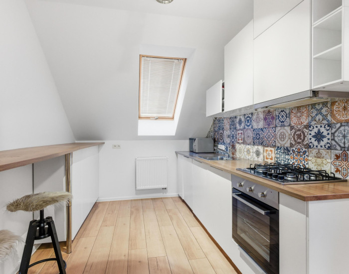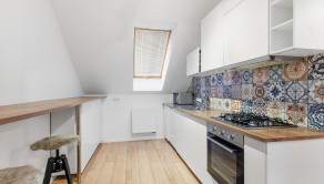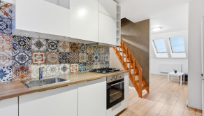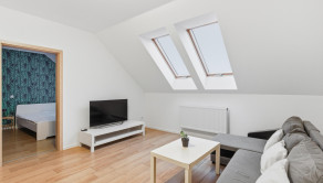 BYT: Byt sa nachádza na štvrtom poschodí bytového domu bez výťahu, celková výmera bytu je 58,8 m² vrátane príslušenstva. Dispozičné riešenie bytu je nasledovné: vstupná chodba, z ktorej je prístup do kúpelne s WC (hneď vpravo pri vstupe do bytu) a samostatnej technickej miestnosti. V pravej časti bytu je situovaná kuchyňa s jedálenským pultom a barovými stoličkami a kuchynskou linkou, schodište k mezonetovej spálni uprostred bytu a v ľavej časti bytu priechodná obývačka so spálňou. Byt je plne zariadený v nadštandardnom vyhotovení. Mezonetová spálňa je vybavená klimatizáciou.