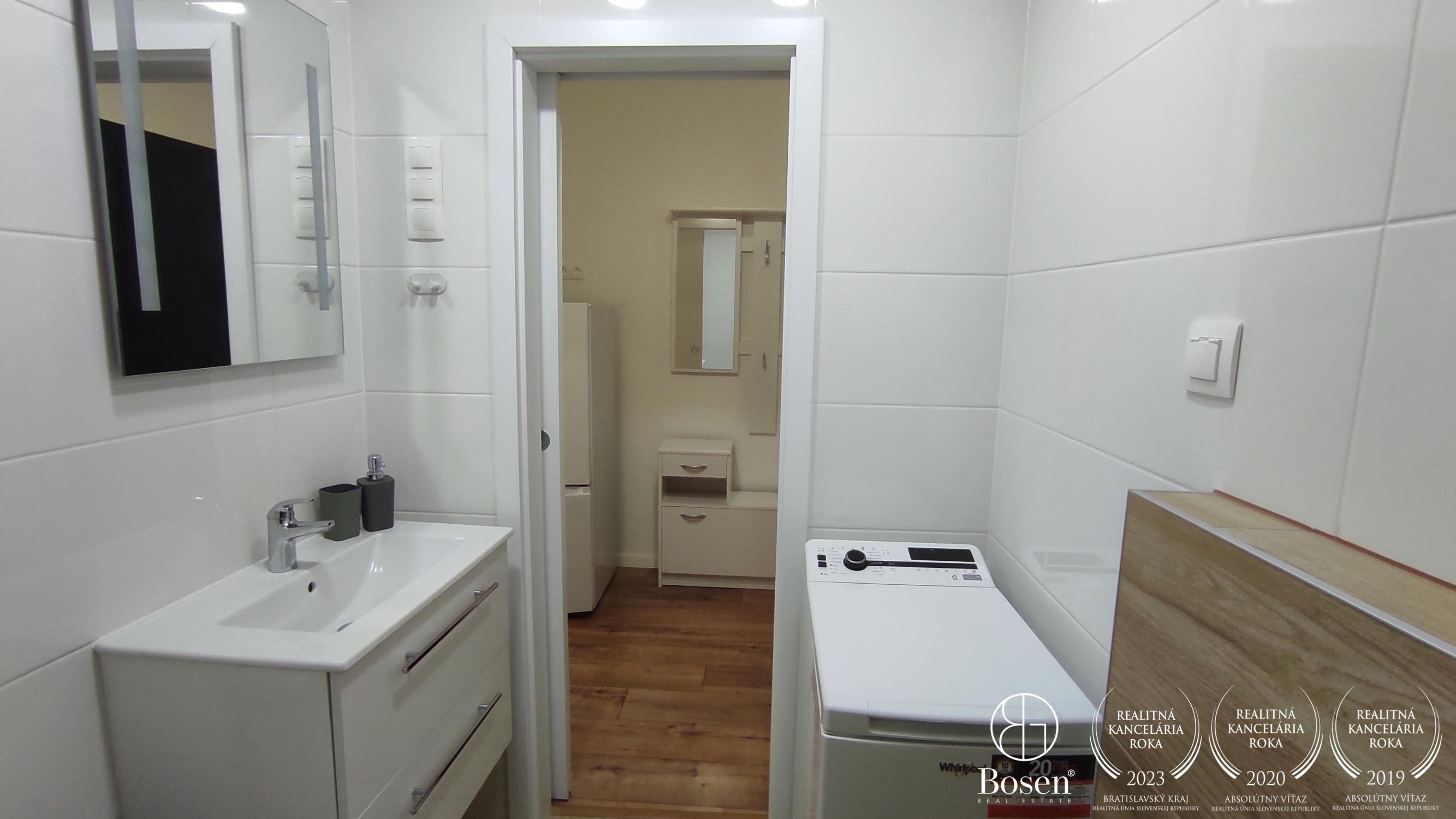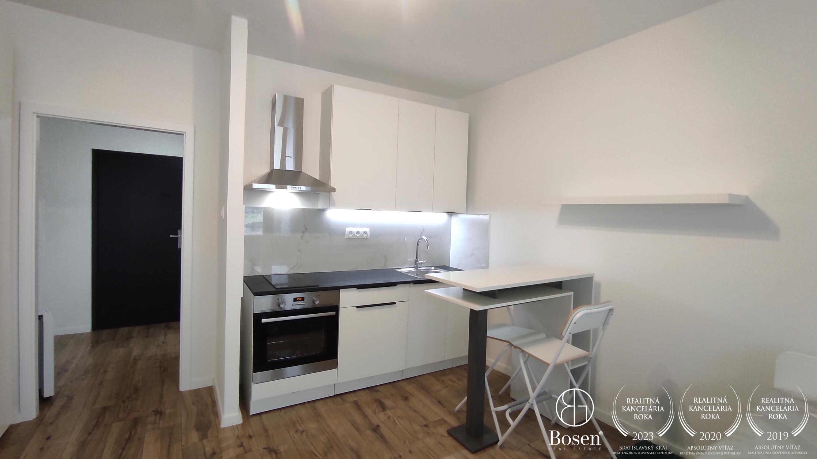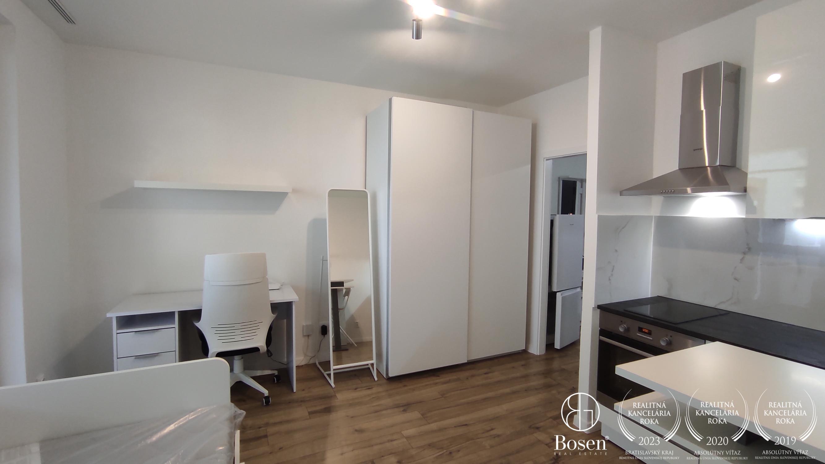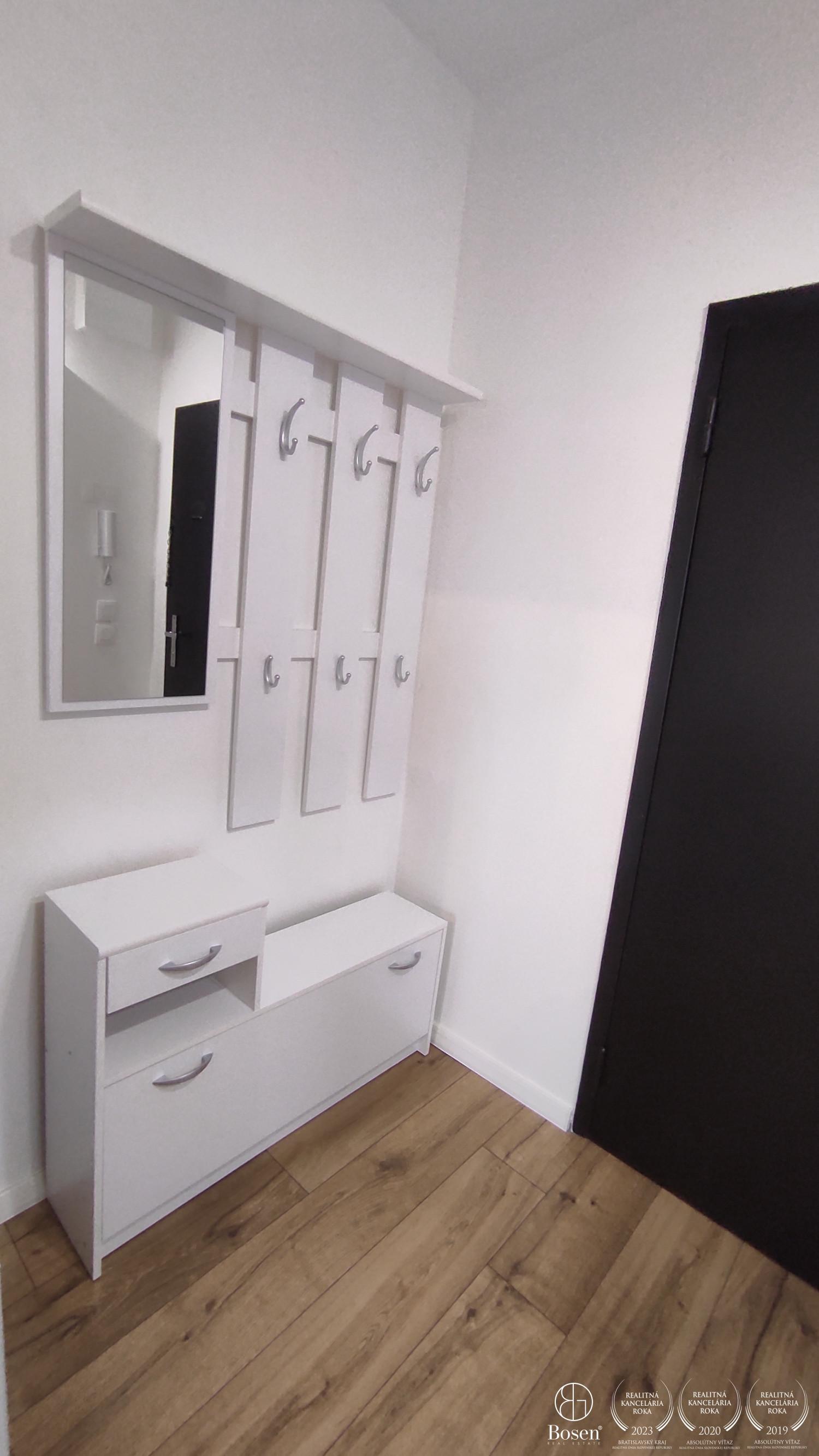 ZARIADENIE: Byt sa prenajíma kompletne zariadený. Zariadený je ako vidíte na fotografiách. Kuchynská linka je vybavená vstavanou elektrickou rúrou, indukčnou varnou doskou a digestorom, chladničkou s mrazničkou. Obývacia izba je útulná s dostatočným úložným priestorom. WC je spojené s kúpeľňou.