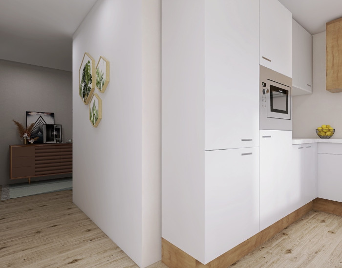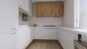 V inzeráte sú použité aj vizualizačné fotky kuchyne, ktorá je momentálne nezariadená.